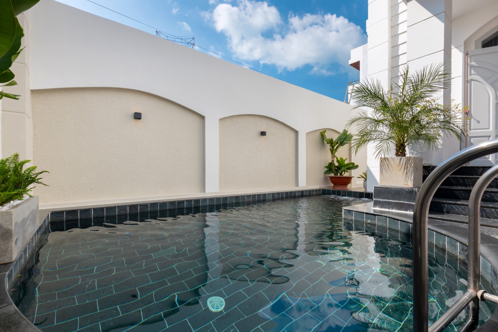 • Hồ bơi trong xanh được xử lý nước mỗi ngày